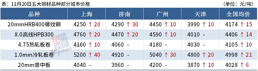 ◎ 中天鋼鐵11月下旬出廠價(jià)螺紋鋼漲130、線材盤螺漲130,帶鋼漲100。