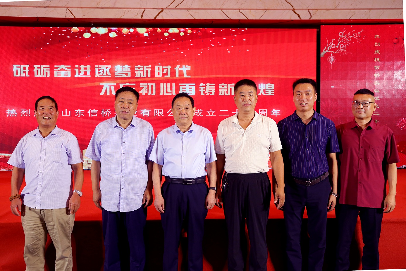 歲月如歌,風(fēng)霜如畫,二十七年彈指一揮間,山東信橋?qū)崢I(yè)有限公司(以下簡稱山東信橋)迎來了二十七周年的生日。二十七年來,信橋人在激烈的市場競爭中奮力拼搏、砥礪前行,接受了市場風(fēng)風(fēng)雨雨的洗禮,取得了累累碩果。為了慶祝這一特殊的日子,2021年8月8日,以“拼搏進(jìn)取,開創(chuàng)新時代”為主題的山東信橋二十七周年慶典活動在寶盛大酒店舉行。
