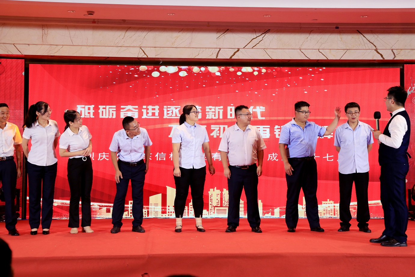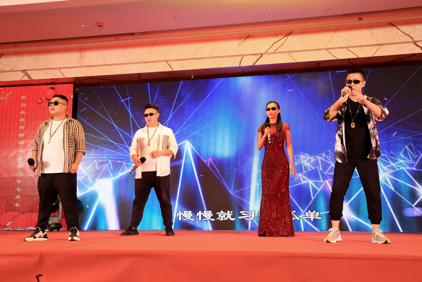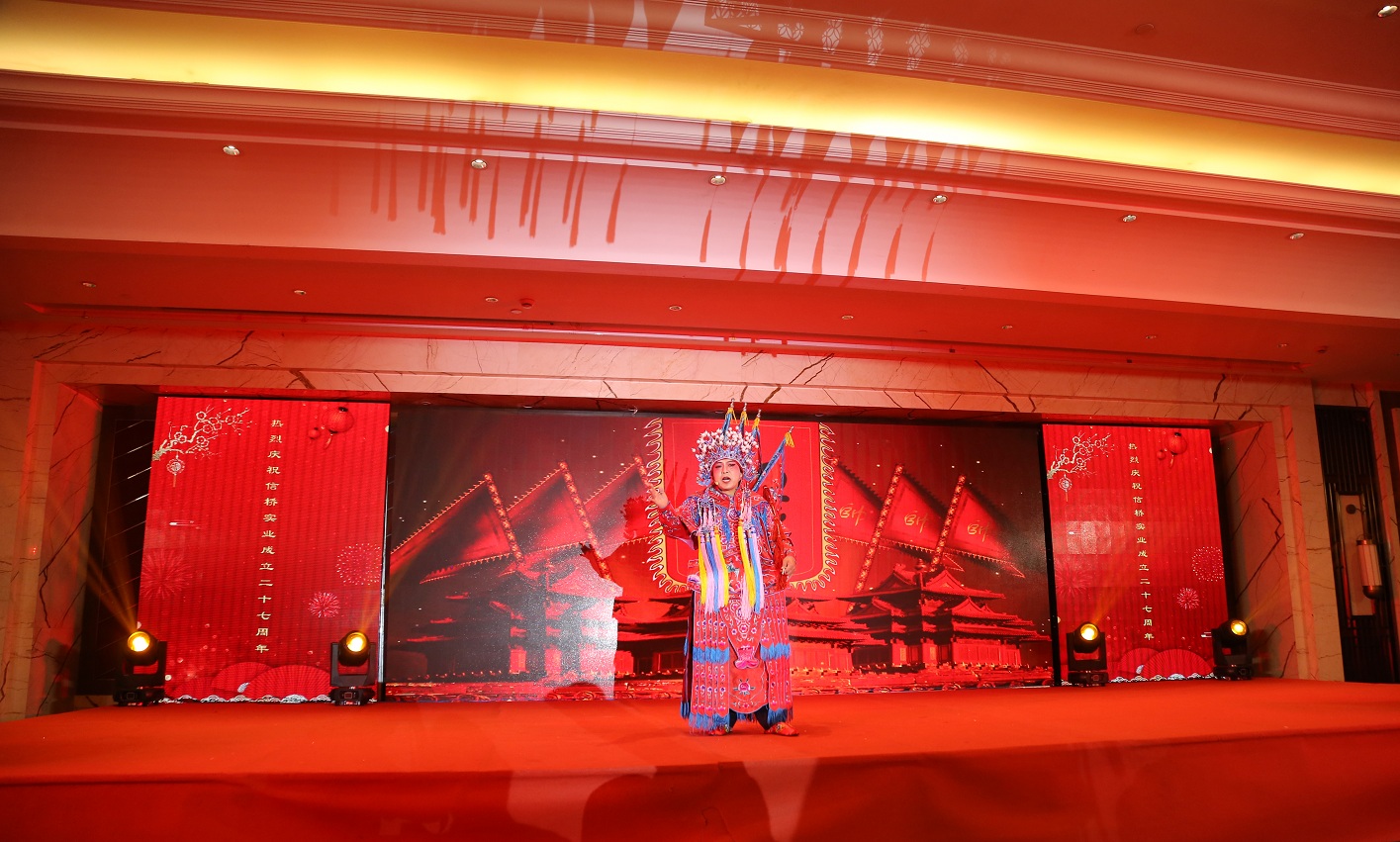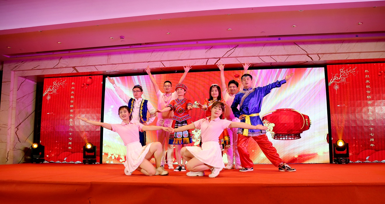此次慶典晚宴參加人員除了信橋全體員工之外,還有部分老領(lǐng)導(dǎo)和老朋友,大家共同分享了信橋二十七周年的喜悅與精彩。八號上午,慶典開始之前,演員們辛勤排練,燈光師、音響師共同配合,所有人為了晚會都在努力。下午4點(diǎn)58分,晚會正式開始,全體員工與領(lǐng)導(dǎo)集體合影,信橋隊伍不斷在擴(kuò)大。今年的晚會添加新的互動方式,采用了直播和紅包雨的新形式,是信橋周年慶典的一次新的嘗試。