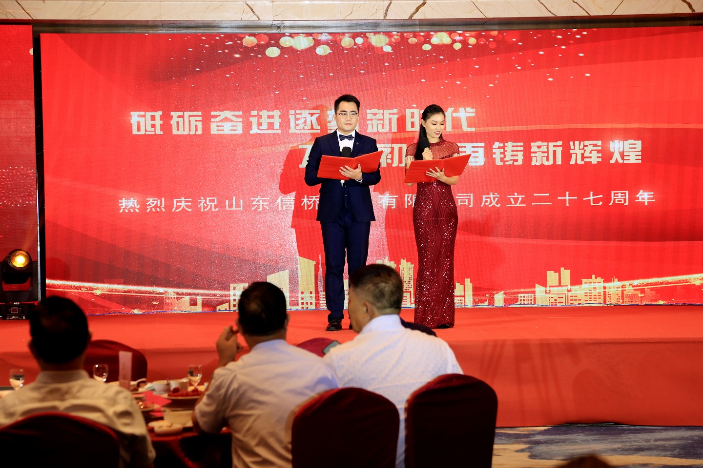 上半場結(jié)束,晚宴正式開始,在領(lǐng)導(dǎo)的帶領(lǐng)下,大家共同舉杯,共同祝愿信橋二十七周歲快樂!