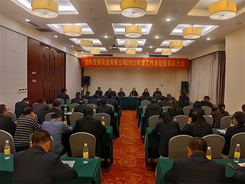 2024年1月8日,山東信橋?qū)崢I(yè)有限公司2023年度總結(jié)暨表彰大會(huì)在泰安帝苑酒店隆重舉行。董事長(zhǎng)徐立波、總經(jīng)理徐宏以及辦公室人員50余人參加了會(huì)議。會(huì)議由副總經(jīng)理石振偉主持。