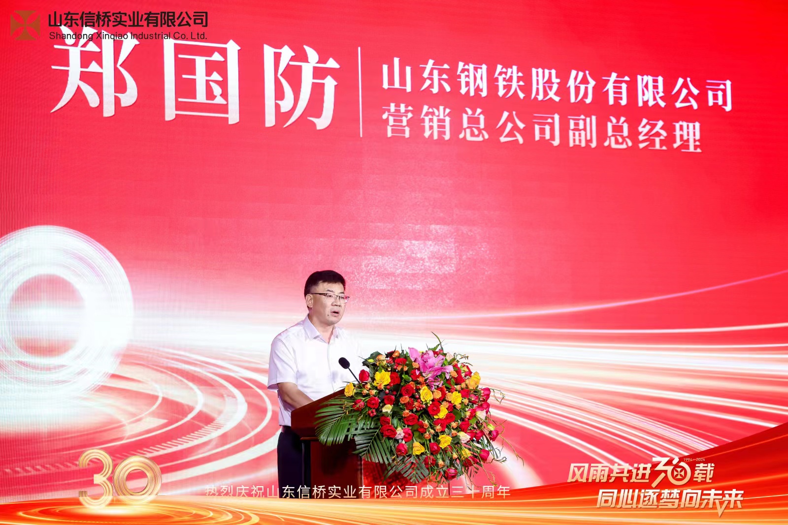 鄭總首先對(duì)信橋30周年慶典表示祝賀,并強(qiáng)調(diào)信橋公司在耐低溫和低合金型鋼以及角鋼等領(lǐng)域表現(xiàn)突出,為國(guó)內(nèi)外重點(diǎn)工程、重要客戶(hù)提供了滿(mǎn)意的產(chǎn)品和服務(wù),為塑造山鋼品牌做出巨大貢獻(xiàn)。最后對(duì)雙方合作做出美好展望。