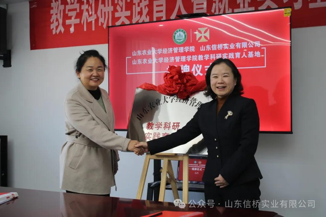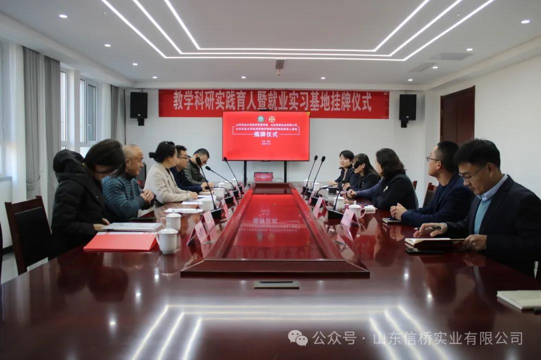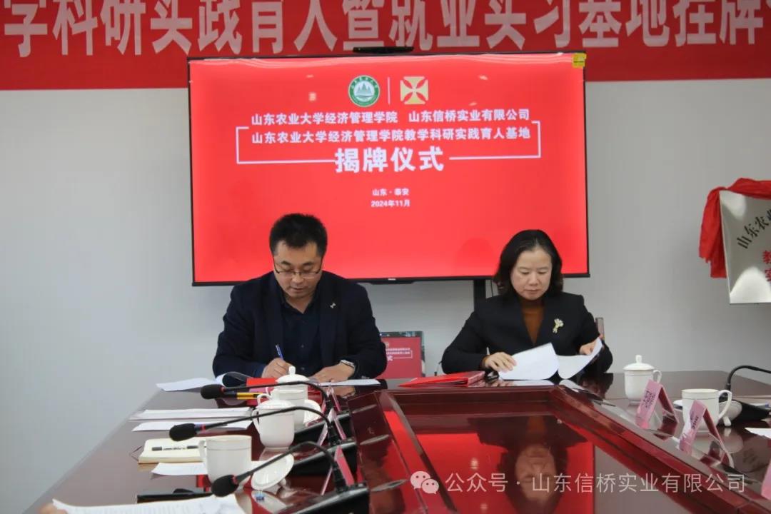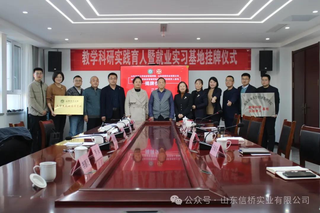 11.28日,山東農(nóng)業(yè)大學(xué)經(jīng)管學(xué)院與山東信橋?qū)崢I(yè)有限公司在信橋公司舉行了教學(xué)科研實(shí)踐育人暨就業(yè)實(shí)習(xí)基地掛牌儀式。