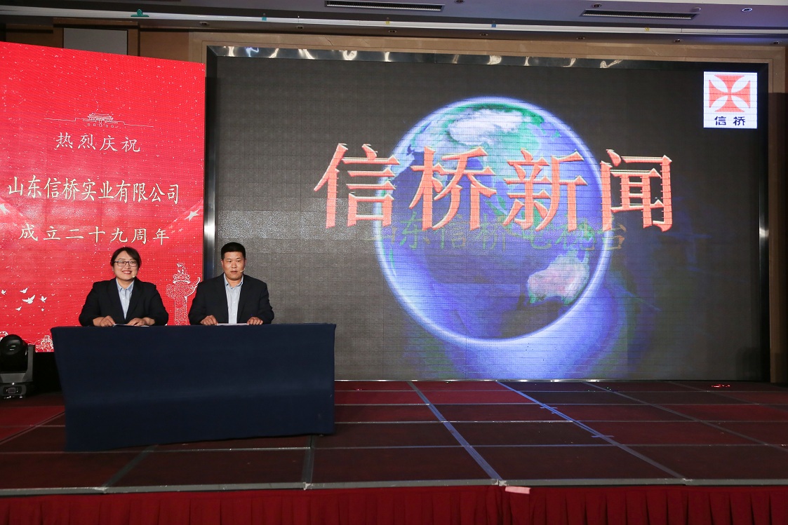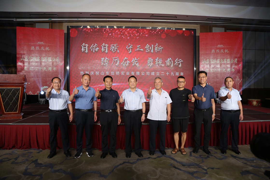 歲月如歌,風(fēng)霜如畫,二十九年彈指一揮間,山東信橋?qū)崢I(yè)有限公司(以下簡(jiǎn)稱山東信橋)迎來(lái)了二十九周歲的生日。二十九年來(lái),信橋人在激烈的市場(chǎng)競(jìng)爭(zhēng)中奮力拼搏、砥礪前行,接受了市場(chǎng)風(fēng)風(fēng)雨雨的洗禮,取得了累累碩果。為了慶祝這一特殊的日子,2023年8月8日,以“激流勇進(jìn),安定團(tuán)結(jié)謀發(fā)展 披荊斬棘,開拓創(chuàng)新向未來(lái)”為主題的山東信橋二十九周年慶典活動(dòng)在寶盛大酒店舉行。